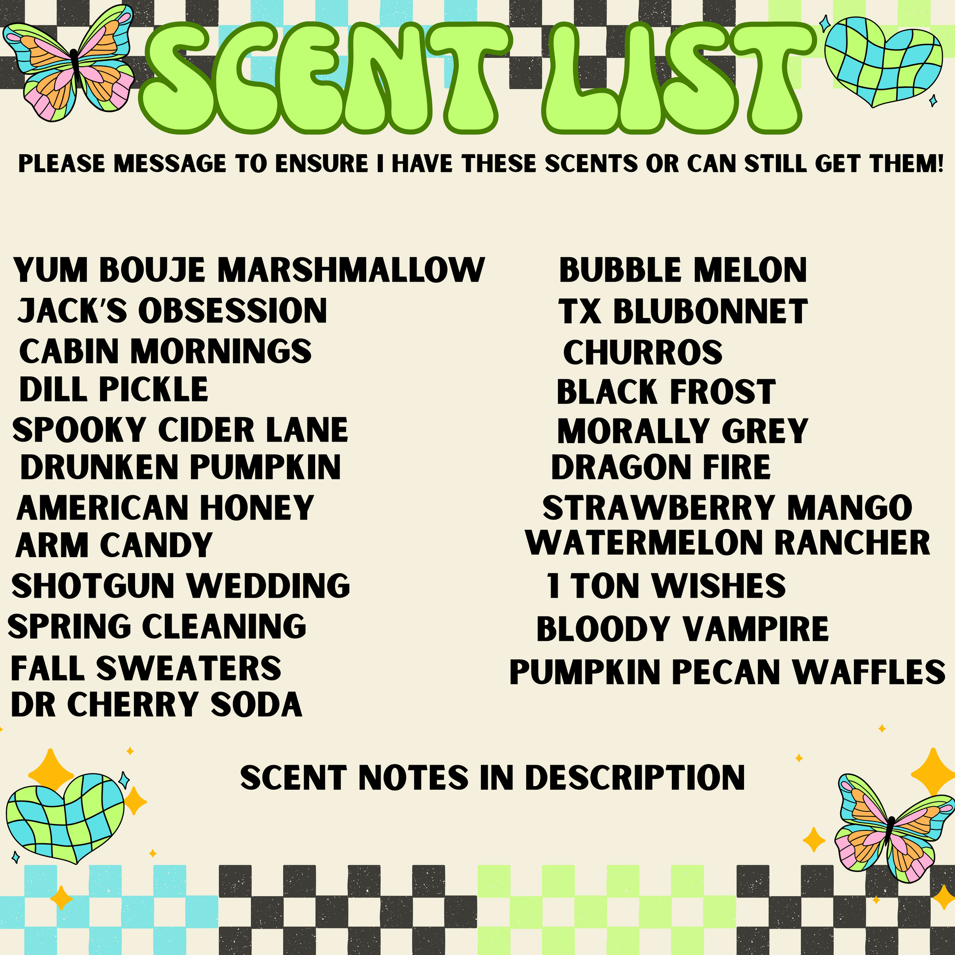 More listings will come as I add more scents. Please make sure to message me first to see if I still have these scents or can get them!